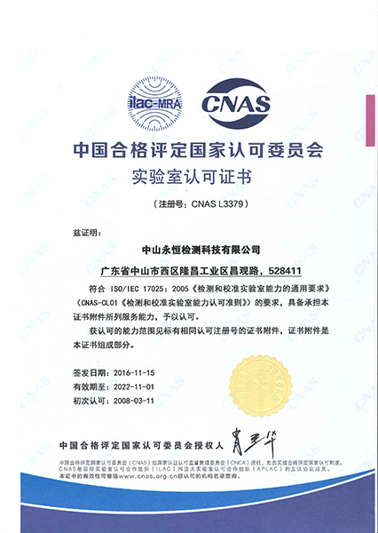 永恒檢測嚴(yán)格按照ISO/IEC 17025建立實(shí)驗(yàn)室管理體系,獲得CMA(國家認(rèn)證認(rèn)可監(jiān)督管理委員會)認(rèn)證及CNAS(中國合格評定國家認(rèn)可委員會)認(rèn)可,所出具的檢測報告具有法律效力和國際公信力。